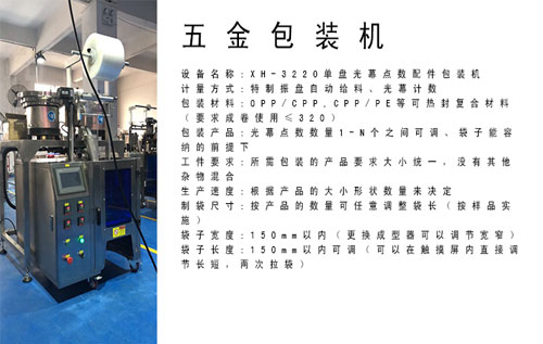 應(yīng)用于各種五金螺絲包裝,電子零件包裝,電子元器件包裝及食品包裝。螺絲包裝機可單款產(chǎn)品包裝,可多款產(chǎn)品混合包裝,包裝數(shù)量包裝袋長度可自由調(diào)節(jié),自動送料、自動計數(shù)、自動封口、自動包裝.五金件自動包裝機還應(yīng)用于各種顆粒狀食品等各種行業(yè)實現(xiàn)自動化計數(shù)包裝,檢測,打標(biāo)等,為適應(yīng)于不同工件的上料需求設(shè)計制作了不同型號.為專業(yè)化,標(biāo)準(zhǔn)化的生產(chǎn)進(jìn)一步提高了產(chǎn)品的穩(wěn)定性,一致性,降低了成本,為出優(yōu)質(zhì)產(chǎn)品提供了可靠的保證。