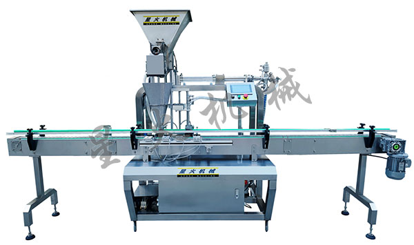 全自動榨菜灌裝機(jī)是自動上料機(jī)輸送物料至提料機(jī)料斗,提料機(jī)送料至物料計量器,物料計量器料倉里無料時,提料機(jī)自動供料,而物料計量器料倉里滿料時,提料機(jī)供料自動停止;螺桿輸送物料至計量容器后,送料至灌裝裝置;罐子輸送裝置將清洗過的空罐輸送至灌裝頭下進(jìn)行醬菜灌裝,再通過注油管道加油,而后進(jìn)行封口。