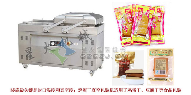 雞蛋干是改變形狀的雞蛋。是以雞蛋為原料的新食品。是將雞蛋全蛋濃縮加工而成,產(chǎn)品營養(yǎng)價(jià)值高,含有豐富的優(yōu)質(zhì)蛋白質(zhì),而且包裝輕便易攜帶,成為新時尚休閑零食;雞蛋干的生產(chǎn)工藝比較復(fù)雜,用到的設(shè)備有:打蛋機(jī)——攪拌桶——灌裝機(jī)——蒸煮鍋——鹵煮鍋——真空包裝機(jī)——殺菌鍋等;其中星火食品包裝機(jī)械生產(chǎn)的蛋液灌裝成型機(jī)就起到了灌裝定型的作用;