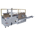 4)整形完成后,輸送機(jī)開始啟動(dòng),把裝箱好的產(chǎn)品輸送到自動(dòng)折蓋封箱機(jī)處,光電開關(guān)感測(cè)到紙箱到來后,自動(dòng)把紙箱上蓋折疊,同時(shí)封上膠帶。