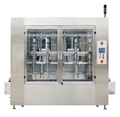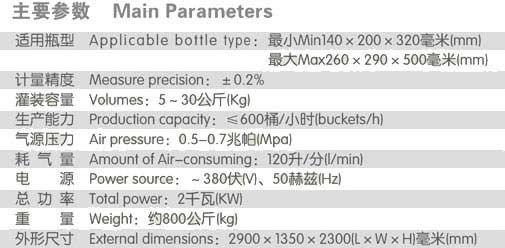 該機(jī)每一灌裝單元均由高精度稱重傳感器、控制儀表和灌裝速度控制閥組成可實(shí)現(xiàn)快、慢速灌裝。