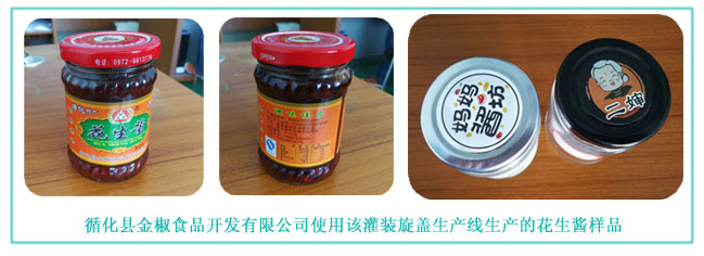 循化縣金椒食品開發(fā)有限公司位于青海省,主要生產(chǎn)銷售辣椒醬、花生醬及其它醬料產(chǎn)品。經(jīng)過對比,該公司選擇了星火自動辣椒醬灌裝真空旋蓋生產(chǎn)線并已投入使用。下圖為生產(chǎn)的樣品: