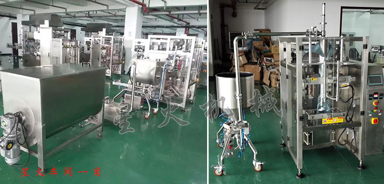 1、袋裝醬料包裝線帶液體攪拌裝置和液位控制裝置,防止微顆粒物料沉淀;